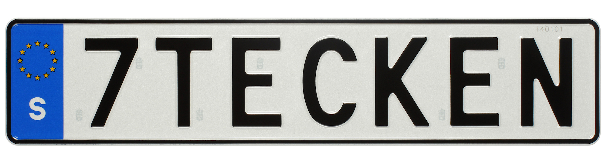 Personliga skyltar har plats för 7 tecken, varav en del kan vara "mellanrum". Som MIN BIL, med ett tomslag i mitten.