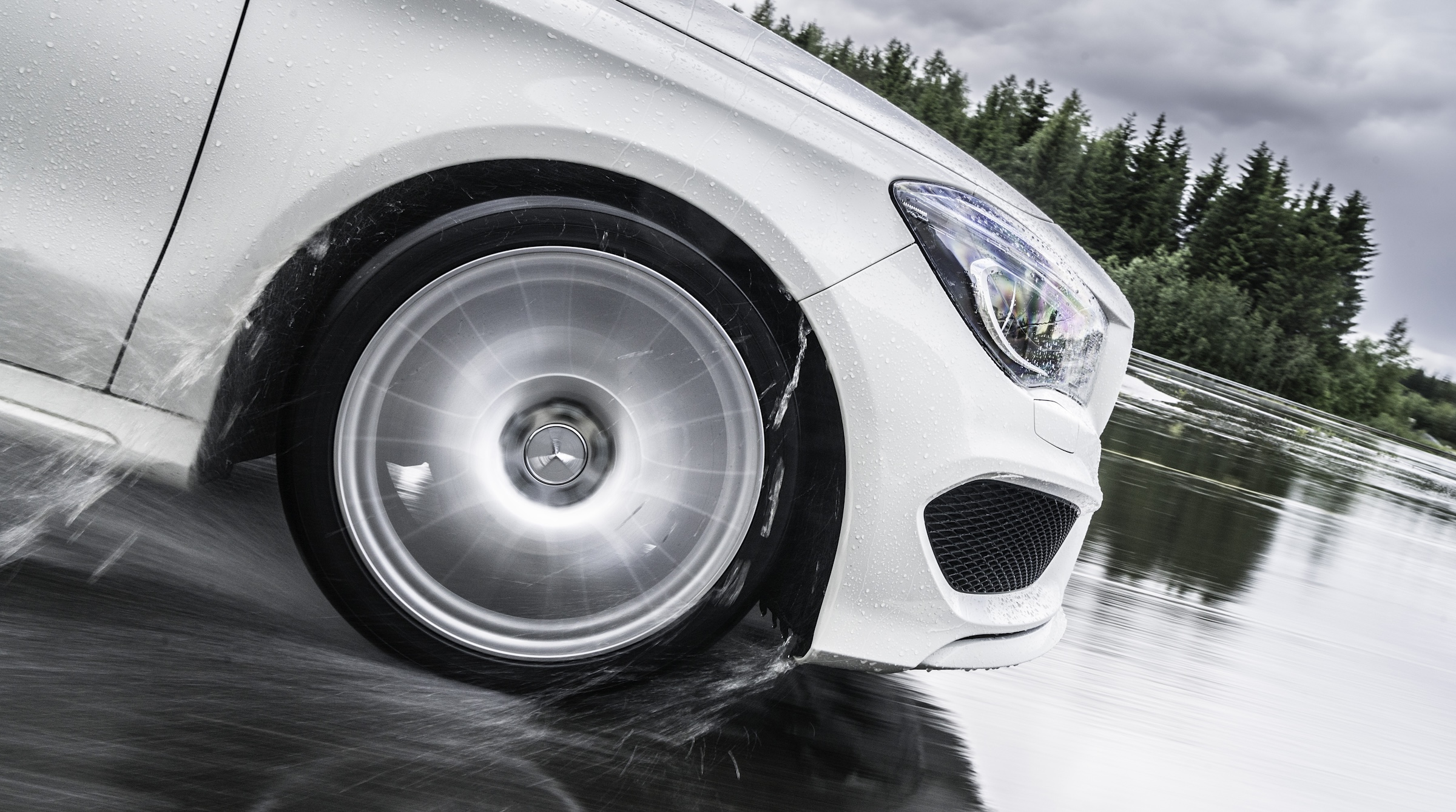 Kort bromssträcka på våta vägar är en viktig egenskap.